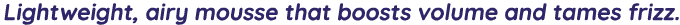 Een vloeibaar product dat verandert in schuim wanneer het wordt afgegeven, perfect om volume te geven aan dun haar. De formulering met ricinusolie, rijk aan vitamine E, hydrateert en maakt het haar zacht, glanzend en vol.