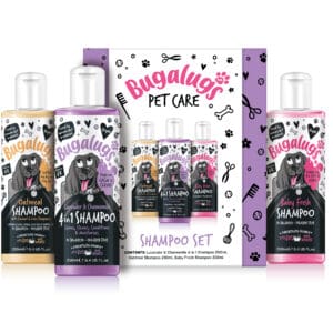 De Bugalugs 250ml Shampoo Cadeauset (3-pack) bevat: 1 x Lavendel & Kamille Shampoo 250ml, 1 x Havermout Shampoo 250ml, 1 x Baby Fresh Shampoo 250ml