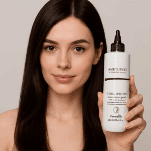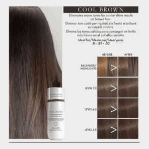 De unieke gel textuur druppelt niet en zorgt voor comfortabele, snelle toepassing. De Instant Coulouring Fluid van FarmaVita Amethyste is direct klaar voor gebruik en heeft geen developer nodig. De Instant Coulouring Fluid is verkrijgbaar in meerdere kleuren. Cool Brown is een diepe, koel bruine tint die ideaal is om diepte, koelheid en glans toe te voegen aan lichte tot medium blonde en bruine haarkleuren of balayage. Cool Brown neutraliseert ook ongwenste warmte in de haarkleur. Hoe lichter het haar, hoe feller het resultaat. Cool Brown is vooral geschikt voor haarkleuren .8 – .81 – .52. FarmaVita Amethyste Instant Colouring Fluid is vrij van ammonia, PPD/PTD en MEA en lift de natuurlijke haarkleur niet op.