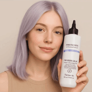 FarmaVita Amethyste Instant Colouring Fluid Frozen Lilac 250ml is een semi-permamente, directe, vloeibare kleuring voor ongelooflijk levendige, rijk een glanzende resultaten in slechts 3 minuten. De unieke vloeistof op gelbasis zorgt voor intense en briljante kleurresultaten. De Instant Coulouring Fluid biedt grijsdekking tot 40% en is ideaal om de eerste grijze haartjes te maskeren. De delicate formule heeft een zure pH-waarde van <6.5 en werkt zelfs op donkere basissen (behalve Frozen Lilac en Gold Blonde). Dankzij de snelle inwerking van 3 minuten kun je tijd besparen in de salon.