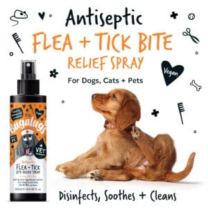 Onze verzachtende Vlooien- en Tekenbeet Relief Spray biedt uw huisdier onmiddellijke verlichting van jeukende, geïrriteerde en gebeten huid.