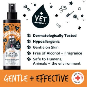 Bugalugs Antiseptische Vlooien- & Tekenbeet Relief Spray is een geavanceerde formule die gebruik maakt van hypochloorzuur; geproduceerd door het immuunsysteem van uw huisdier als een natuurlijke reactie om infecties te bestrijden.