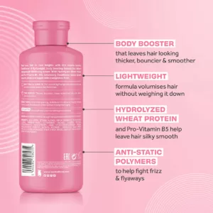 De Plumping Conditioner is de tweede stap naar maximaal volume. Dit is een feest voor uitgedroogd haar en houdt het haar gezond. Het Pro-Volume™ complex met een combinatie van voedende ingrediënten voedt het haar zodat het mooi vol wordt. Deze verzorgende behandeling verwijdert grondig alle opgebouwde vuilresten die het haar vaal maken en geven het haar een prachtige glossy super glans!