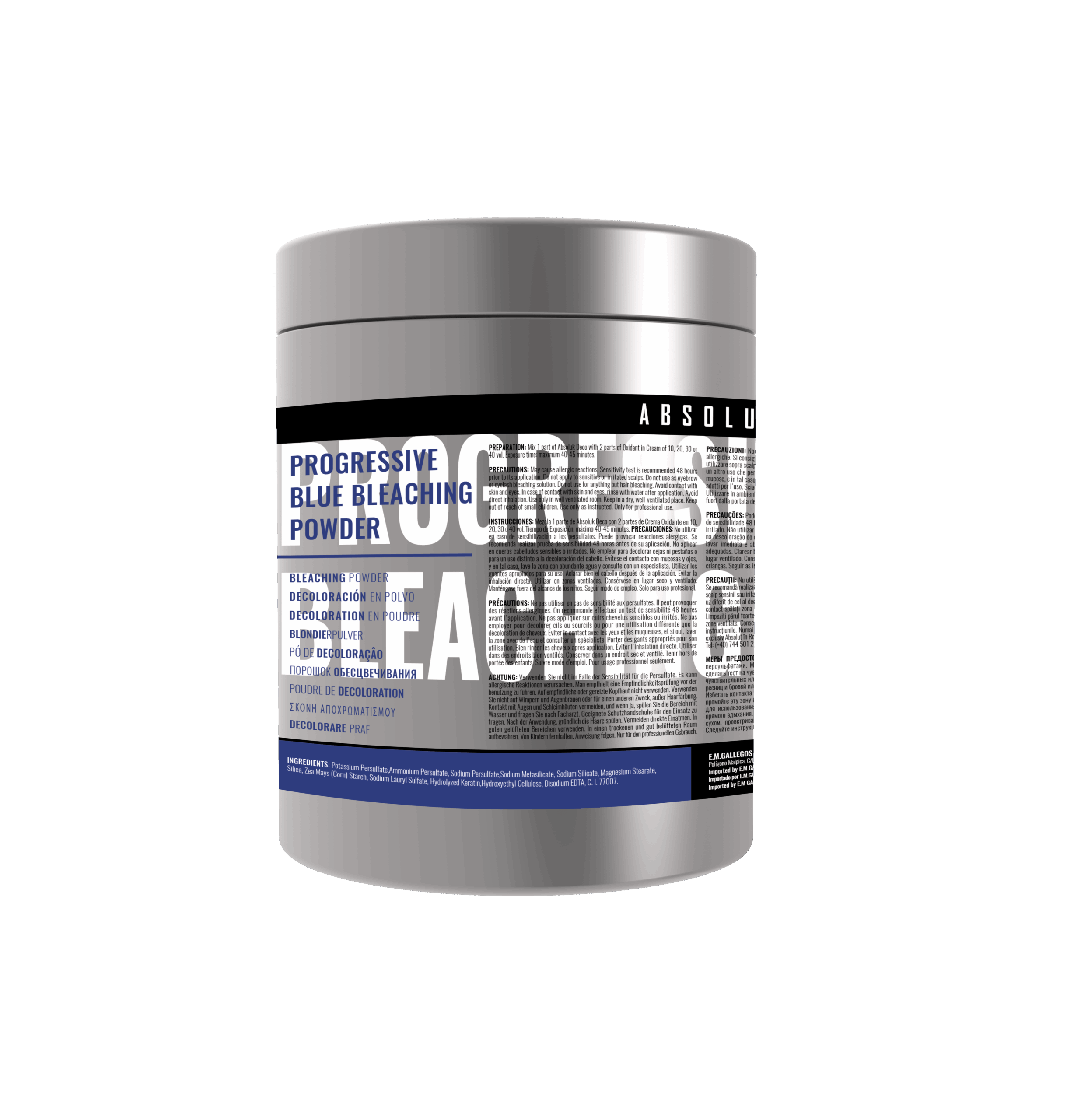 Multi-techniek blauw bleekpoeder. Geschikt voor alle oplichttechnieken: highlights, algehele ontkleuring, reiniging van highlights, strippen (kleurverwijdering), etc.