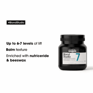 De L’Oréal Blond Studio Platinium Plus Bleach Paste is een ontkleuringspasta die het haar optimaal respecteert. De oplichtende formule licht natuurlijk of gekleurd haar met een donkere basis tot wel 7 tinten op. Dankzij de unieke formule van de blondeerpasta wordt het haar tot 20% sneller opgelicht in vergelijking met een gewone blondeerpoeder.