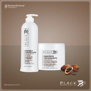 Herstructurerend masker voor droog en beschadigd haar. De gecombineerde actieve ingrediënten van de formule verjongen en versterken het haar; het is rijk aan cacao-extracten , waarvan de mineralen en vitamines regenererende en hydraterende eigenschappen hebben, en keratine , een eiwit dat het haar versterkt en opnieuw opbouwt , waardoor de elasticiteit en kracht van binnenuit wordt hersteld en hersteld.