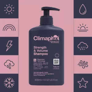 De ClimaplexTM Strength & Volume Shampoo is een klinisch bewezen shampoo die haar en hoofdhuid beschermt tegen de elementen en schadelijke stoffen, terwijl hij hoofdhuid en haar effectief reinigt, het haar van de wortels tot de punten volumiseert, herstelt, versterkt, hydrateert en gladstrijkt.