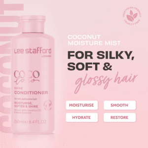 “Lee Stafford CoCo LoCo & Agave Shine Conditioner is een conditioner tjokvol voordelen van kokos & Agave. Droog en beschadigd haar? Dit is de tweede stap naar een zijdezachte en glanzende look. Het ingrediënt kokosolie levert essentiële eiwitten welke ervoor zorgen dat beschadigd haar gevoed wordt en zich weer herstelt. Daarnaast zullen Silk Protein en Keratin je haar herstellen terwijl Phytantriol en Pro Vitmine B5 je haar beschermt tegen breuken. Naast kokos, bevat deze conditioner nu ook Agave voor extra voeding, beweging en een oogverblindende glans.