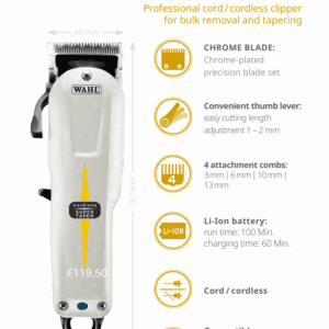 De Wahl Super Taper Cordless is de tondeuse voor de professional maar ook zeer geschikt voor thuis gebruik.