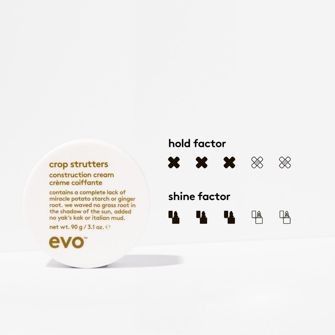 Crop Strutters Construction Cream is een haarcrème met een medium hold en glans die zorgt voor gedefinieerde en textuurrijke stijlen. Deze haarcrème biedt ondersteuning voor het stylen en houdt de vochtigheid in het haar vast. De in water oplosbare formule kan eenvoudig worden uitgespoeld zonder productresten achter te laten. De toevoeging van Cera Carnauba zorgt voor een flexibele hold die naar wens kan worden aangepast. Crop Strutters Construction Cream is onderdeel van de Style-familie en biedt styling- en finishingopties voor alle haartypen.
