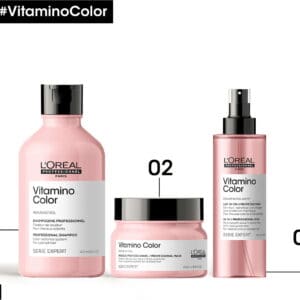 De Serie Expert Vitamino Color Trio Geschenkset van L’Oréal Professionnel Paris verzorgt gekleurd haar en helpt de haarkleur te beschermen tegen vervaging.