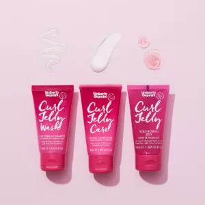 De best verkopende Curl Jelly-trio nu in een 50 ml x 3 reisstarterkit. Was en style je een weg naar je meest glanzende, veerkrachtige krullen.