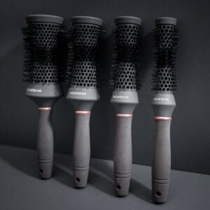 Haar beschermende ronde borstel met ionentechnologie en soft-touch handgreep