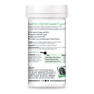 Houd de mondhygiëne van uw huisdier onder controle met Bugalugs Plaque Remover. Dit 100% natuurlijke supplement, gemaakt van met de hand geoogst Iers zeewier, helpt tandplak en tandsteen te verwijderen.
