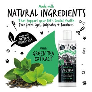 Bescherm de tanden en het tandvlees van uw huisdier met de Bugalugs Dental Care Solution; gemaakt van natuurlijke ingrediënten die de vorming van tandplak en tandsteen helpen verminderen en tegelijkertijd een frisse adem bevorderen. Voeg de oplossing simpelweg toe aan de waterbak van uw hond of kat, poetsen is niet nodig.