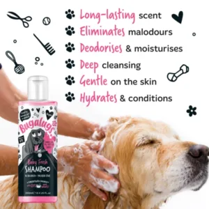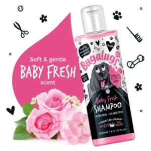 De Bugalugs No Rinse Baby Fresh Shampoo reinigt en verfrist de vacht van uw hond direct, zonder water. Dit product is perfect voor honden die geen fan zijn van traditionele wasmethoden. De gebruiksvriendelijke oplossing maakt baddagen een stuk gemakkelijker! Spuit het schuim simpelweg in uw hand of direct op de vacht van uw hond en wrijf het in de vacht met uw vingertoppen of uw favoriete Bugalugs-borstel.