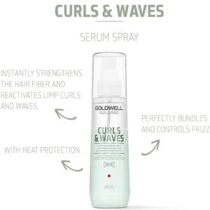 Goldwell Dualsenses Curls & Waves leave-In 2 Fasen Serum Spray zorgt voor een anti-pluis effect en geeft het haar hittebescherming. De leave-in spray versterkt en voedt het haar voor mooi gedefinieerde krullen. De formule is verrijkt met melk proteine wat de elasticiteit verbeterd met veerkrachtig effect voor gehydrateerde en gereactiveerde krullen.
