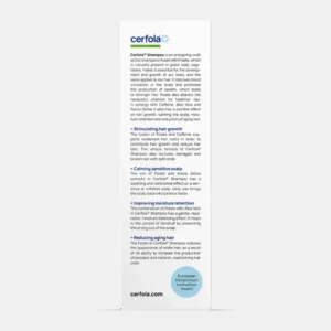 Cerfola® Shampoo is een verkwikkende shampoo met meerdere werkingen, verrijkt met Folaat, dat van nature aanwezig is in groene bladgroenten. Folaat is essentieel voor de ontwikkeling en groei van ons lichaam, en hetzelfde geldt voor ons haar.