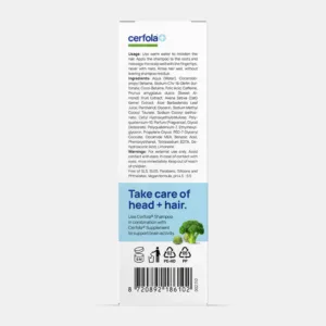 Daarnaast heeft de combinatie van Folaat met Aloë Vera in Cerfola® Shampoo een zachte, herstellende en vochtbalancerende werking. Het helpt bij de bestrijding van roos door uitdroging van de hoofdhuid te voorkomen.