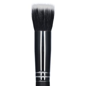 Vanwege de bijzondere samenstelling van korte echte en lange synthetische haren,voorkomt dit foundationpenseel een ‘pancake face’.