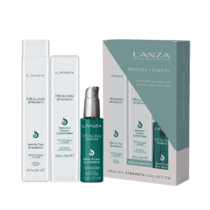 Sluit af met de Healing Strength Serum (100 ml), dit is een ultra lichtgewicht leave-in formule die zorgt voor directe glans en zijdezachte souplesse zonder het haar te verzwaren of vet te maken. Dit serum herstelt de jeugdige kracht en glans van dof en kwetsbaar haar, terwijl het ook bescherming biedt tegen UVA-, UVB- en UVC-stralen. Samen zorgen deze producten ervoor dat je haar er stralend en gezond uitziet.