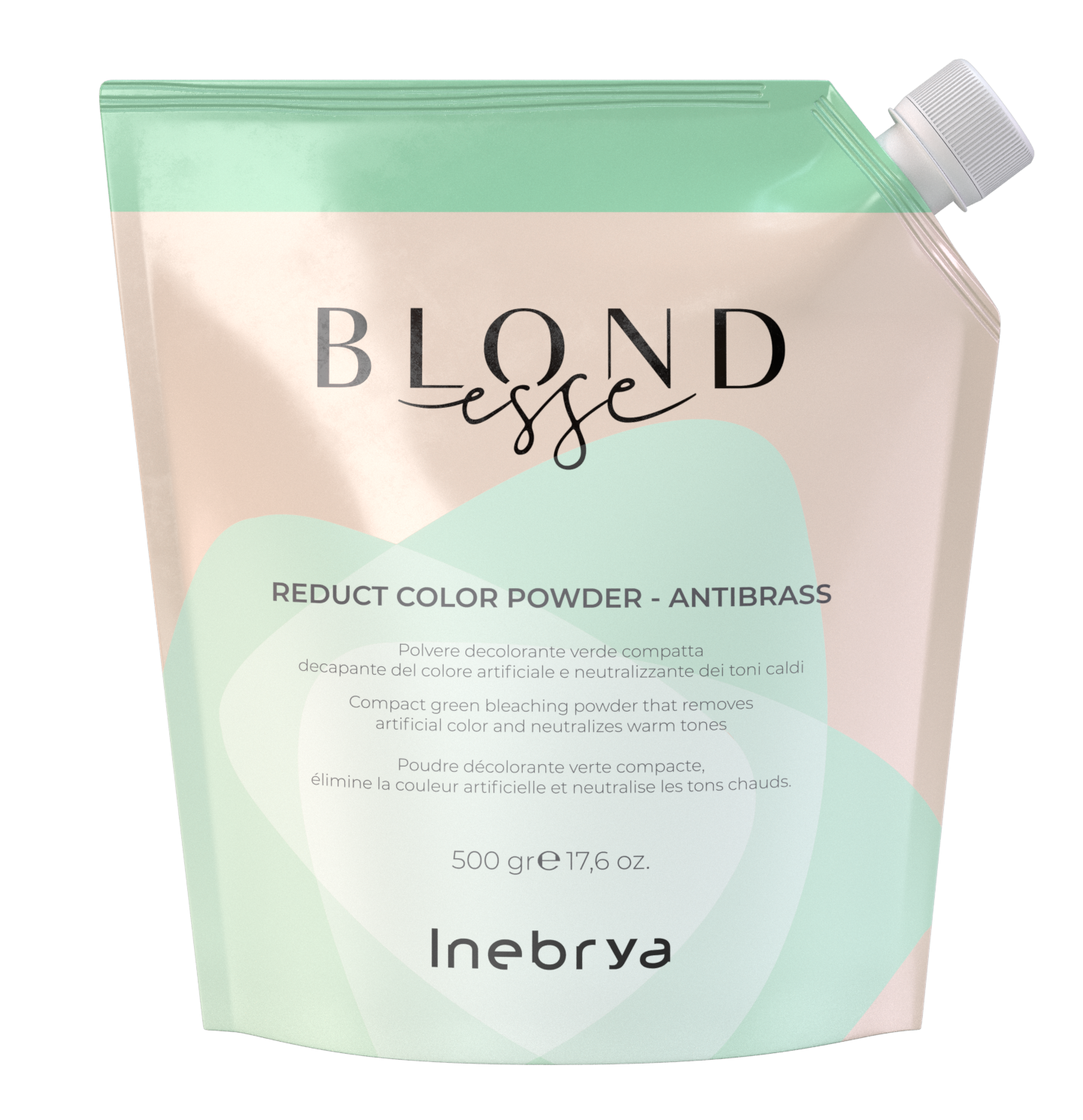De Blondesse Reduct Color Powder verwijdert cosmetische kleur gedeeltelijk of volledig. Het verlicht op een evenwichtige en gelijkmatige manier tot wel 5 niveaus. Het bevat groene micropigmenten om warme oranje/rode ondertonen te neutraliseren.