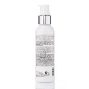 2. Schud de fles goed, verdeel vervolgens twee tot drie pompjes in de handpalm en verdeel door het haar, beginnend een centimeter onder de haargrens en door tot in de punten.