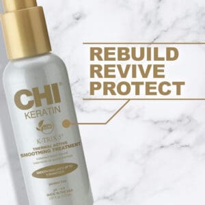 CHI Keratin K-Trix 5 Thermal Active Smoothing Treatment werkt in combinatie met de warmte van een styling tool. Dankzij de behandeling wordt het haar vanaf de aanzet glad gemaakt en gehydrateerd.