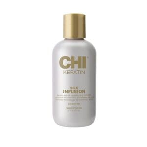 CHI Keratin Silk Infusion is een krachtig complex dat droog en beschadigd haar herstelt en hydrateert. Natuurlijke keratine herstelt de schubbenlaag, de zijde dringt diep in het haar door, reguleert vocht en zorgt voor een gladde schubbenlaag.