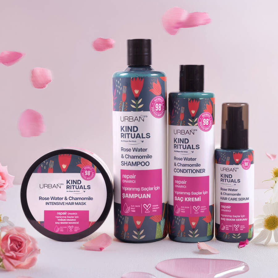 URBAN Care Kind Rituals Repair Hair Care Cream is speciaal ontwikkeld voor beschadigd haar. Het is verrijkt met rozenwater, rijk aan vitamines en mineralen en unieke kamille-extracten. Met zijn romige structuur zorgt het voor zijdezachte zachtheid en gemakkelijk doorkambaar haar haar.