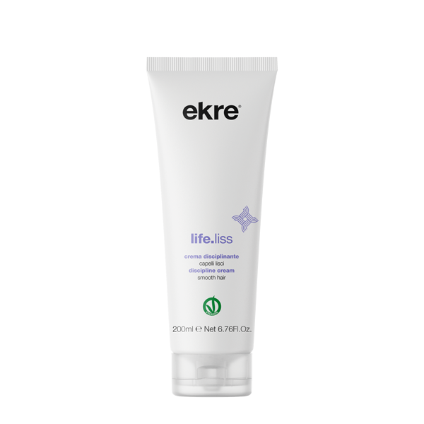 Life.Liss -crème voor steil haar is een belangrijk onderdeel van de Ekre-verzachtende behandeling: het werkt intensief conditionerend, werkt als een leave-in-conditioner, temt onhandelbaar haar en elimineert kroezen om perfect, steil haar te creëren.