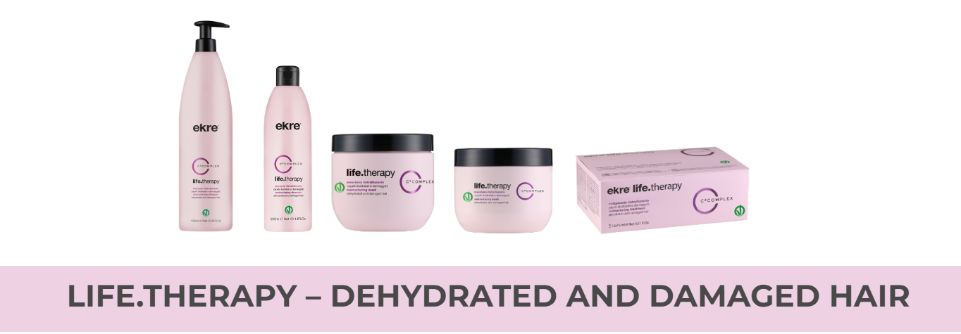 Life.Therapy Restructuring Shampoo voor uitgedroogd en beschadigd haar. De herstellende eigenschappen van de actieve ingrediënten in de formule helpen het haar te revitaliseren en regenereren, waardoor het glans en elasticiteit krijgt.