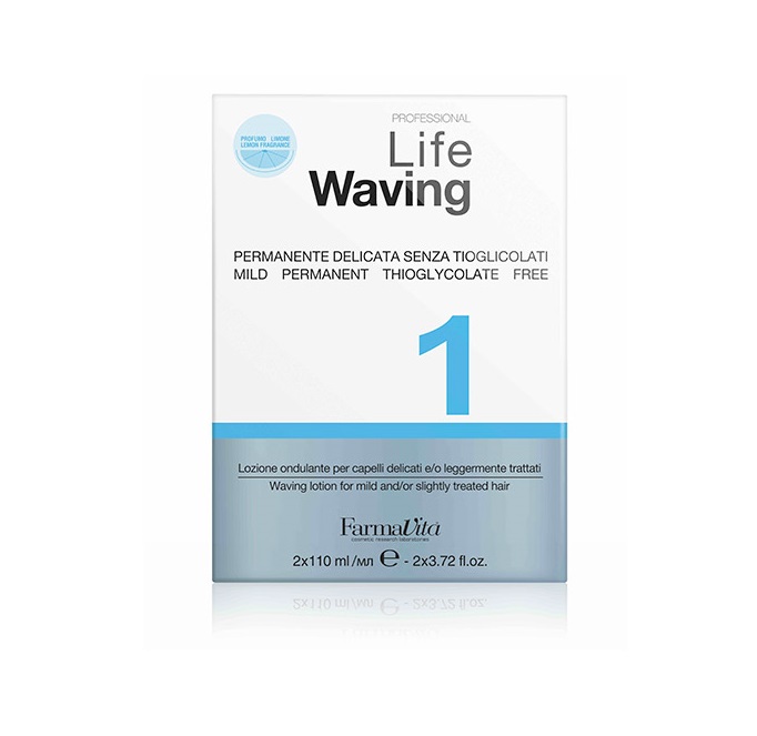FarmaVita Life Waving Nr. 1 110ml is een revolutionaire formule voor een zachte permanent met maximale verzorging van het haar. Nr. 1 is geschikt voor mild of licht behandeld haar. De formule is gebasseerd op Cysteamine HCI en bevat geen thioglicol acid of varianten. Daarnaast is de formule verrijkt met tarwe-proteïne om het haar te revitaliseren. De permanentwerking wordt verkregen door cysteïne.