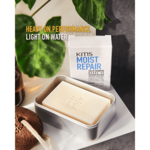 KMS MoistRepair Solid Shampoo is speciaal geschikt voor droog en beschadigd tot normaal haar. Deze shampoo in vaste vorm vult vocht aan en herstelt beschadigingen. In de jaren ’70 bracht KMS al een shampoo in vaste vorm op de markt, de NEFA Bar (Natural Essential Fatty Acid Cleansing Bar). Vandaag de dag is KMS terug met de Solid Shampoo!