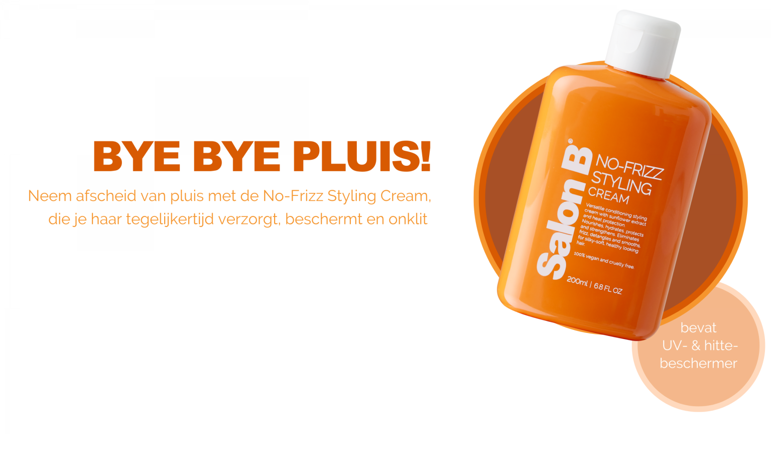 Tip: Heb je last van pluis omdat je haar beschadigd is? Gebruik dan de Salon B Protein Shampoo en Conditioner naast de No-frizz Styling Cream om niet alleen pluis te verdrijven, maar ook om je haar intensief te verzorgen en versterken.