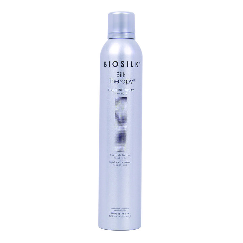 BioSilk Silk Therapy Finishing Spray Firm Hold is een uniek ontworpen haarlak die is ontwikkeld om een sterke fixatie te bieden voor langdurige stijlen, terwijl zijden plantaardige ingrediënten worden gebruikt om een briljante glans te bieden.