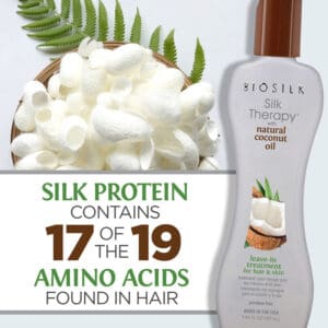 BioSilk Silk Therapy & Natural Coconut Oil verwijdert onzuiverheden, voegt vocht toe, behoudt gezond haar en geeft een subtiele glans aan de huid. BioSilk Natuurlijke Kokosolie verbetert de algehele conditie door schade te voorkomen en droogheid te verlichten, waardoor ongelooflijke zachtheid en glans ontstaat.