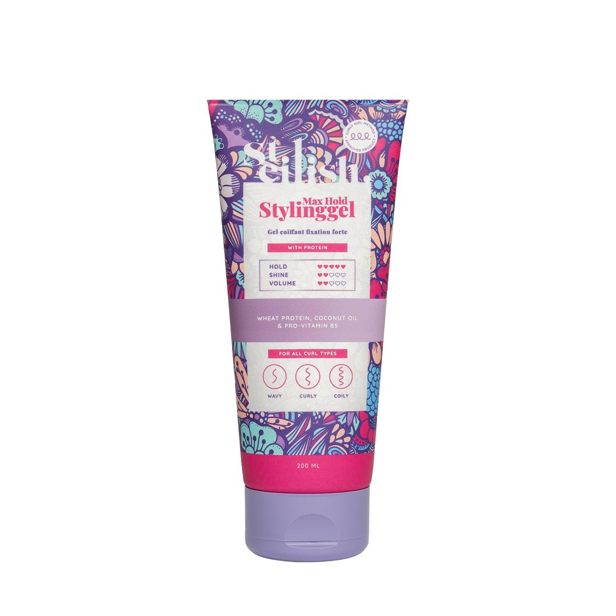 STEILISH Max Hold Stylinggel is ontwikkeld voor langdurige fixatie en maximale definitie. De krachtige formule met Tarweproteïne, Panthenol en Vitamine E houdt je krullen perfect in vorm zonder ze hard of droog te maken.