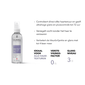 Goldwell Stylesign Weightless Shine-Oil 100 ml maakt elke haartextuur direct steil, glad en glanzend, terwijl het langdurige stijlen biedt met weerstand tegen luchtvochtigheid en pluis tot 72 uur.