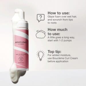 Het is een krachtige schuim en perfect voor het versterken van de krullen. Het creëert volume, volheid, definitie en een langdure hold, ideaal voor fijn haar dat de neiging heeft plat te vallen. Daarnaast is het geschikt voor alle soorten krullen en kan het ook gecombineerd worden met alle andere stylingsproducten van Bouclème, zoals de Curl Cream.