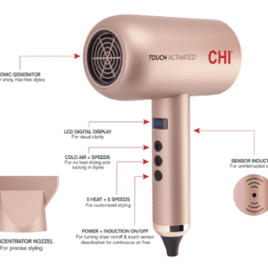 De CHI Touch Activated Reisföhn Rosé is een compacte, lichtgewicht haardroger die de droogtijd verkort dankzij touchsensor-, keramische en ionische technologieën. Met een krachtige luchtstroom kun je moeiteloos gladde, strakke en volumineuze stijlen creëren op elk haartype.