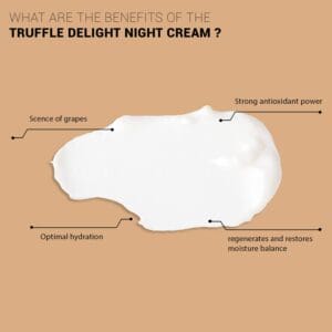 Romige nachtcrème met de geur van druiven hydrateert, regenereert en herstelt de vochtbalans terwijl u slaapt!